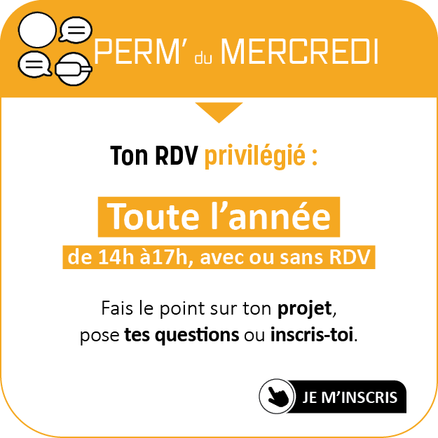Les Perm' du mercredi c'est ton RDV privilégié pour construire ton projet et parler d'un sujet qui nous tient à cœur : ton avenir !