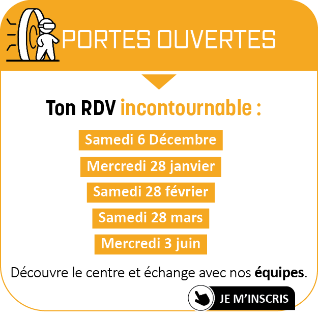 Au programme de ce RDV : visite de nos locaux, découverte de nos équipements, échange avec nos formateurs des différents domaines industriels en fonction de tes envies...